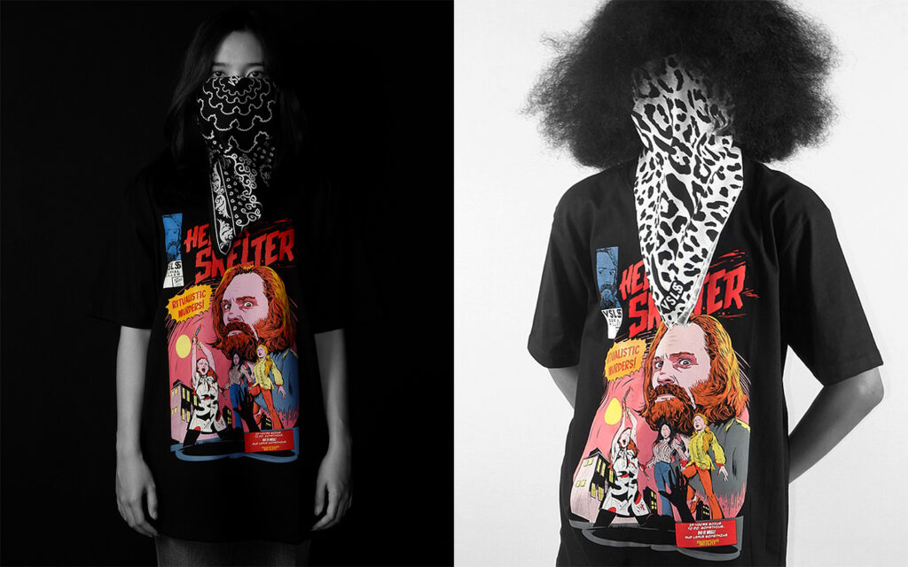 This artwork captures that descent — not with gore, but with symbolism. Manson’s face hovers above like an omnipresent deity, while the women below dance through the city streets, knives dripping, framed in a surreal palette of pop-art style. It feels almost too vivid, too colorful for the horror it represents — and that’s the point. The piece forces us to confront how evil can wear a smile, how manipulation can disguise itself in music, community, and even love.